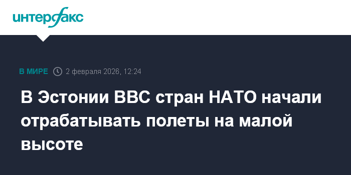 Москва. 2 февраля. INTERFAX.RU - В Эстонии начались учения истребителей ВВС стран НАТО по отработке полетов на малой высоте и сверхзвуковой скорости, сообщила пресс-служба Генерального штаба Сил обороны Эстонии.