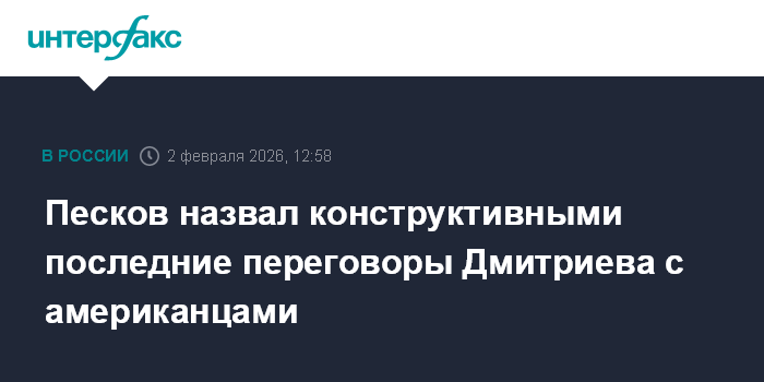 Песков назвал конструктивными последние переговоры Дмитриева с американцами