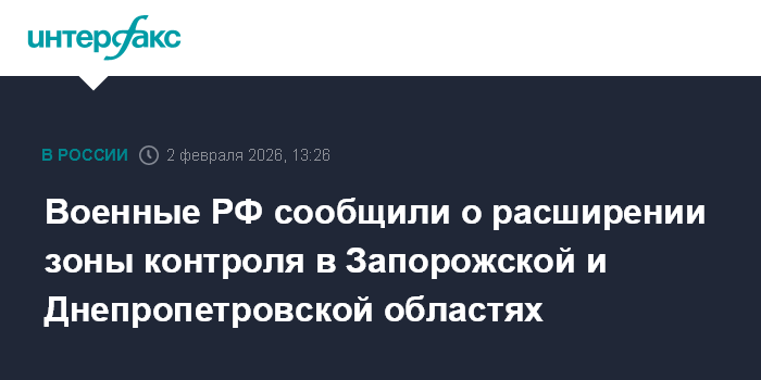 Военные РФ сообщили о расширении зоны контроля в Запорожской и Днепропетровской областях