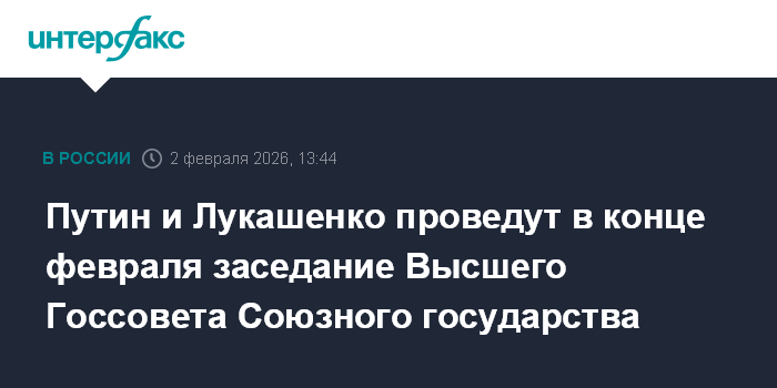 Москва. 2 февраля. INTERFAX.RU - Президенты РФ и Белоруссии Владимир Путин и Александр Лукашенко в конце февраля проведут заседание Высшего Госсовета Союзного государства, сообщил премьер РФ Михаил Мишустин.