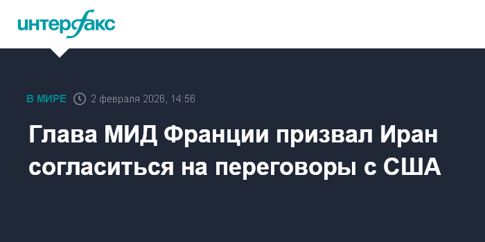 Москва. 2 февраля. INTERFAX.RU - Министр иностранных дел Франции Жан-Ноэль Барро считает, что Иран должен безусловно пойти на предложение США о переговорах. Как передает BFMTV, он сказал это, выступая в университете Тулузы.