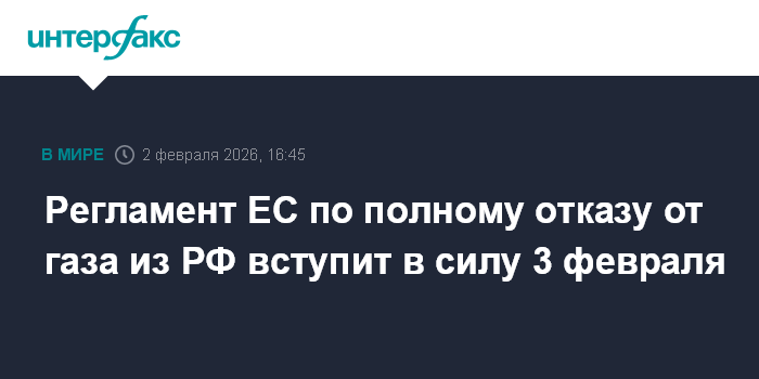 Регламент ЕС по полному отказу от газа из РФ вступит в силу 3 февраля