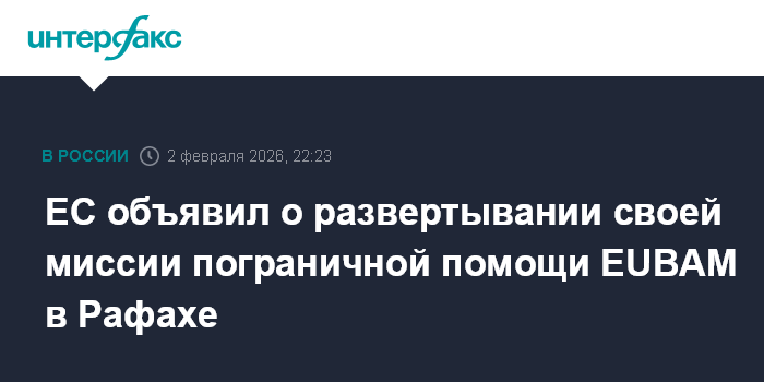 ЕС объявил о развертывании своей миссии пограничной помощи EUBAM в Рафахе