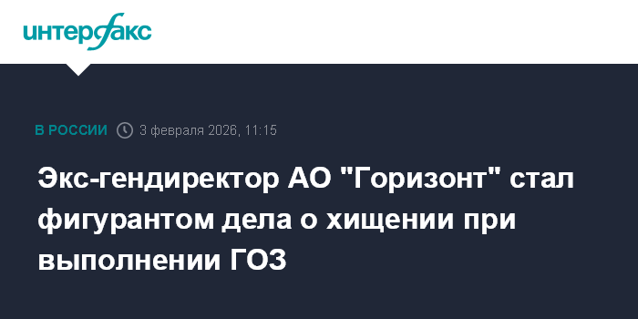 Экс-гендиректор АО "Горизонт" стал фигурантом дела о хищении при выполнении ГОЗ