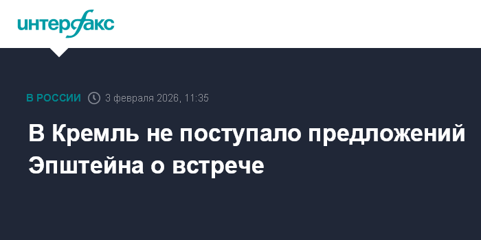 Москва. 3 февраля. INTERFAX.RU - В Кремле не получали от американского финансиста Джеффри Эпштейна предложений о встрече с президентом России Владимиром Путиным.