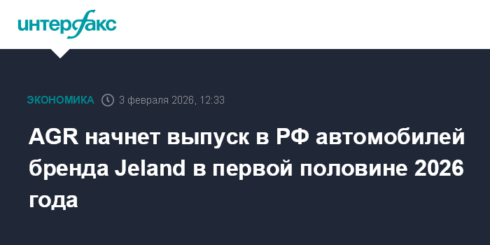 AGR начнет выпуск в РФ автомобилей бренда Jeland в первой половине 2026 года