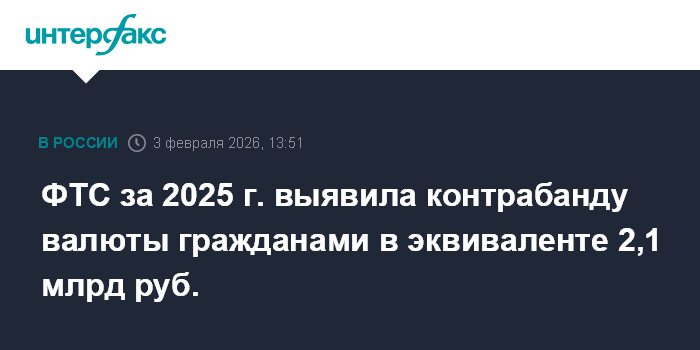 ФТС за 2025 г. выявила контрабанду валюты гражданами в эквиваленте 2,1 млрд руб.