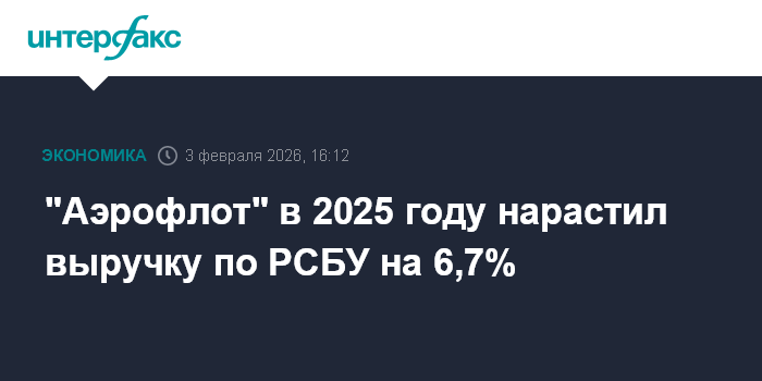 "Аэрофлот" в 2025 году нарастил выручку по РСБУ на 6,7%
