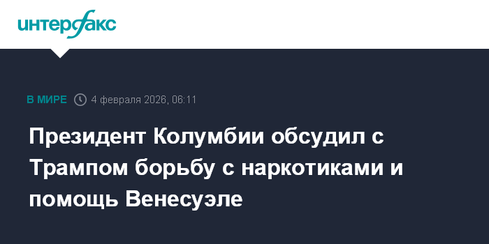 Отношения между Трампом и Петро в последние месяцы были напряженными. Колумбийский лидер часто выступал с критикой действий американского коллеги. Трамп обвинял Петро в де-факто участии в поставках наркотиков из Колумбии в США.