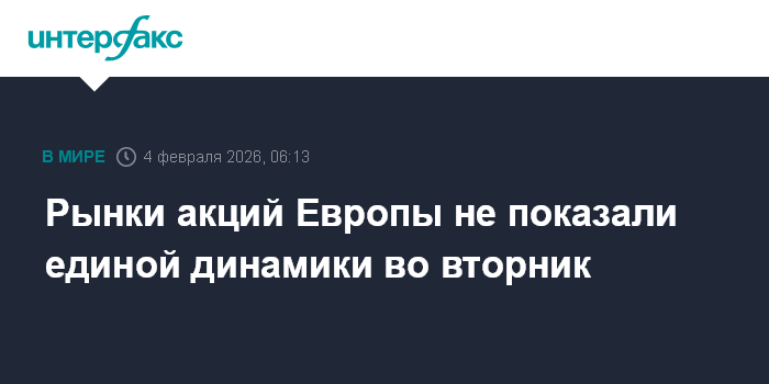 Москва. 4 февраля. INTERFAX.RU - Фондовые индексы ведущих стран Западной Европы завершили торги вторника разнонаправленными изменениями.