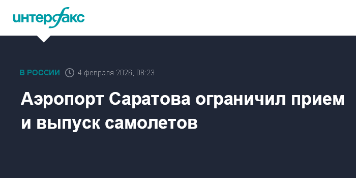 Москва. 4 февраля. INTERFAX.RU - Для аэропорта Саратова "Гагарин" ввели ограничения на прием и отправку рейсов, сообщил представитель Росавиации Артем Кореняко.