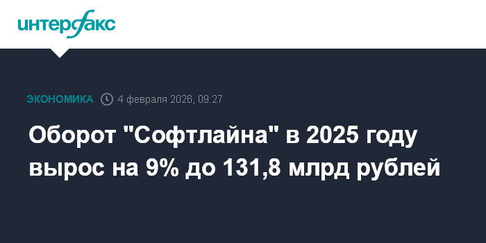 Москва. 4 февраля. INTERFAX.RU - Оборот ПАО "Софтлайн" в 2025 году, по предварительным данным, составил 131,8 млрд рублей, увеличившись на 9% по сравнению с 2024 годом, сообщила компания.