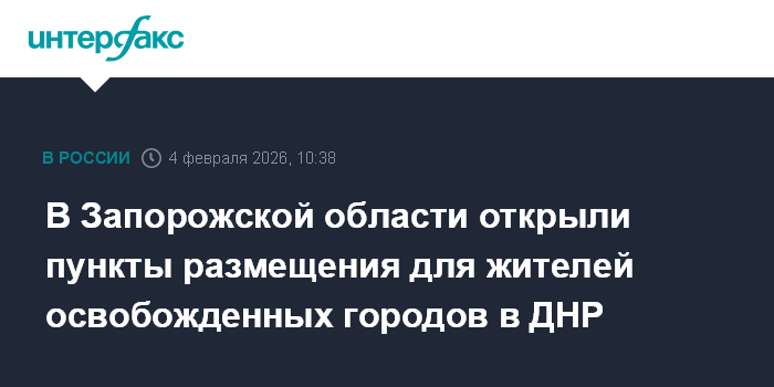 Москва. 4 февраля. INTERFAX.RU - В Запорожской области открыли пункты временного размещения для жителей освобожденных населенных пунктов Донецкой Народной Республики, сообщил губернатор области Евгений Балицкий.