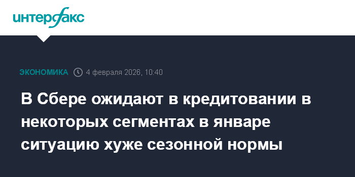 В Сбере ожидают в кредитовании в некоторых сегментах в январе ситуацию хуже сезонной нормы