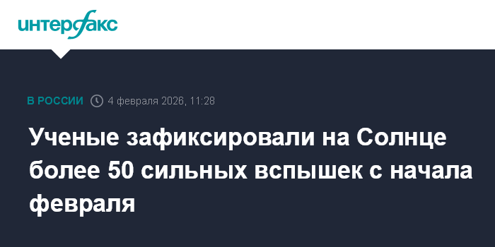 Москва. 4 февраля. INTERFAX.RU - Ученые фиксируют рост активности Солнца, за первые три дня февраля произошло свыше 50 сильных вспышек, сообщили в лаборатории солнечной астрономии Института космических исследований и Института солнечно-земной физики РАН в среду.