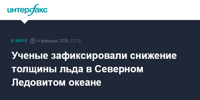 Москва. 4 февраля. INTERFAX.RU - Потепление в Арктике вызывает не только сокращение площади морского льда в Северном Ледовитом океане, но и снижение толщины ледового покрова, свидетельствуют итоги исследований Арктического и антарктического научно-исследовательского института (ААНИИ).