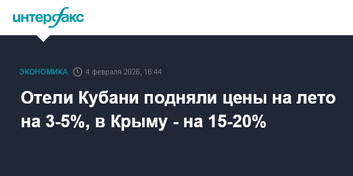 "Но в целом местные отели оставили цены на самые востребованные летние месяцы-2026 практически на прошлогоднем уровне, а крымские - увеличили на 15-20%. В итоге соседи-конкуренты входят в сезон с одинаковыми ценами", - отмечают в объединении.