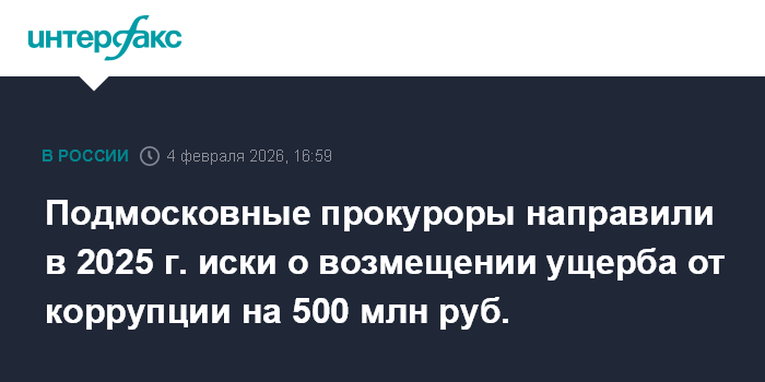 Подмосковные прокуроры направили в 2025 г. иски о возмещении ущерба от коррупции на 500 млн руб.