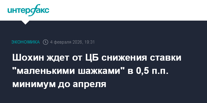 Шохин ждет от ЦБ снижения ставки "маленькими шажками" в 0,5 п.п. минимум до апреля