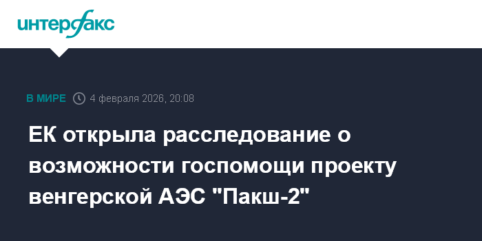 "В прошлом году Суд Европейского союза аннулировал первоначальное решение комиссии от 2017 года, одобрявшее венгерскую государственную помощь строительству атомной электростанции "Пакш-2". И, разумеется, вслед за этим юридическим аннулированием комиссия теперь предприняла открытое официальное расследование по этому вопросу", - сказал пресс-секретарь в среду на брифинге в Брюсселе.