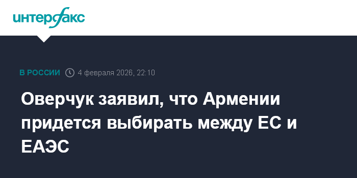 Оверчук заявил, что Армении придется выбирать между ЕС и ЕАЭС