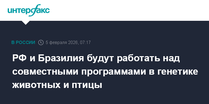 РФ и Бразилия будут работать над совместными программами в генетике животных и птицы