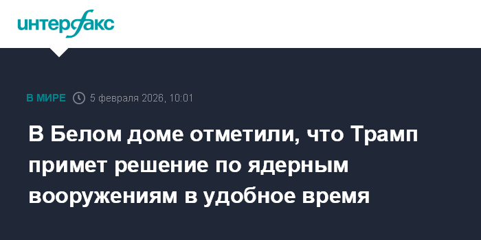 "Трамп примет решение о дальнейшем курсе в отношении контроля над ядерными вооружениями и обнародует его в удобные для себя сроки, заявил представитель Белого дома", - сообщает Bloomberg.