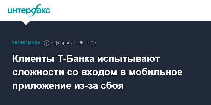 Москва. 5 февраля. INTERFAX.RU - Клиенты Т-Банка испытывают сложности в работе с онлайн-банком из-за сбоя.