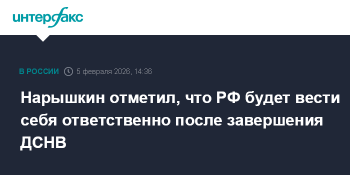 Нарышкин отметил, что РФ будет вести себя ответственно после завершения ДСНВ