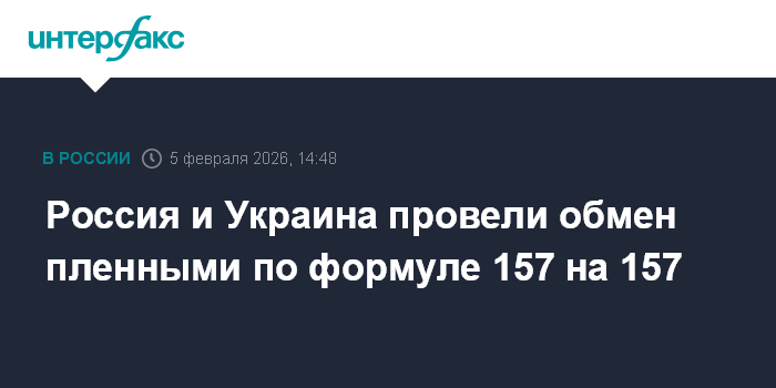 "5 февраля с подконтрольной киевскому режиму территории возвращены 157 российских военнослужащих. Взамен переданы 157 военнопленных ВСУ", - говорится в сообщении ведомства.