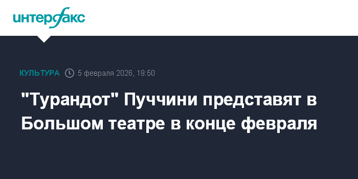 "Турандот" Пуччини представят в Большом театре в конце февраля