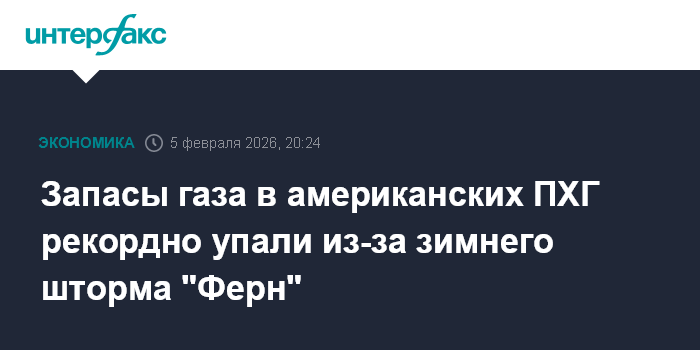 Запасы газа в американских ПХГ рекордно упали из-за зимнего шторма "Ферн"