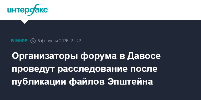Организаторы форума в Давосе проведут расследование после публикации файлов Эпштейна