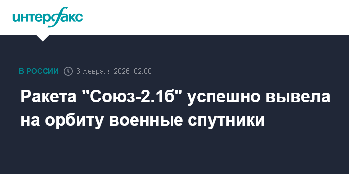 Москва. 6 февраля. INTERFAX.RU - Ракета-носитель среднего класса "Союз-2.1б" успешно вывела на орбиту космические аппараты в интересах Минобороны РФ, сообщили в военном ведомстве.