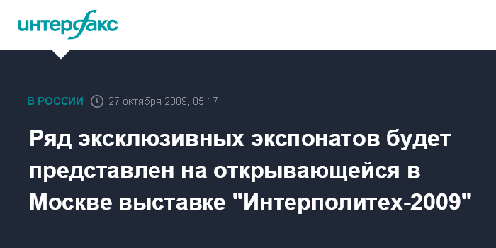 Ряд эксклюзивных экспонатов будет представлен на открывающейся в Москве выставке "Интерполитех-2009"