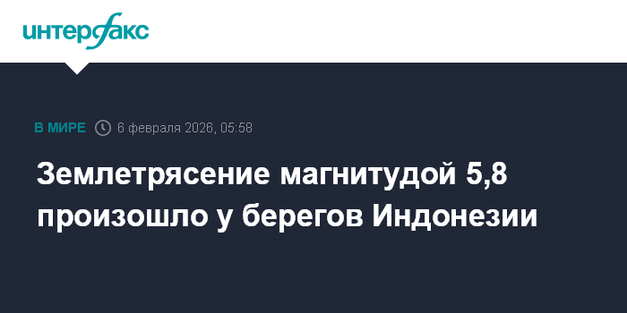 Землетрясение магнитудой 5,8 произошло у берегов Индонезии