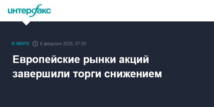 Москва. 6 февраля. INTERFAX.RU - Европейские рынки акций завершили торги в четверг в минусе, трейдеры оценивали корпоративные новости, а также итоги заседаний Европейского центрального банка (ЕЦБ) и Банка Англии.
