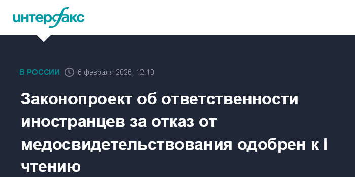 Законопроект об ответственности иностранцев за отказ от медосвидетельствования одобрен к I чтению