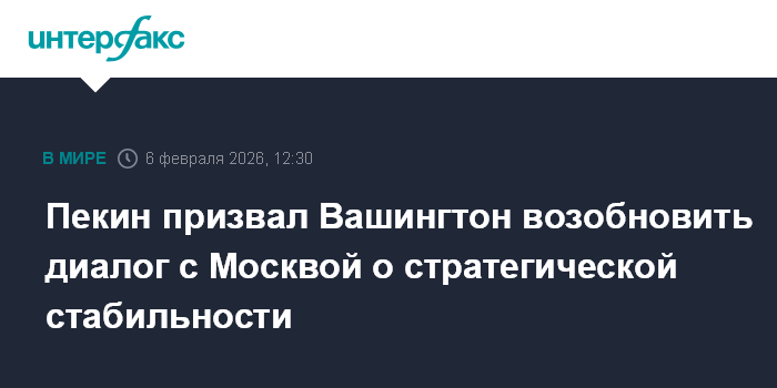 Чтобы глобальная стратегическая стабильность была обеспечена на долгий срок, Китай призывает США возобновить диалог с Россией на эту тему и обсуждать дальнейшие действия после истечения действия Договора о стратегических наступательных вооружениях , сказал Линь Цзянь и добавил, что этого также ожидает международное сообщество.