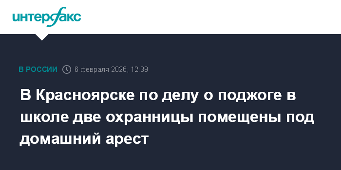 Москва. 6 февраля. INTERFAX.RU - Железнодорожный районный суд Красноярска поместил под домашний арест до 3 апреля двух сотрудниц охраны школы № 153, в которой восьмиклассница совершила поджог и напала других учеников, сообщила пресс-служба судов Красноярского края.