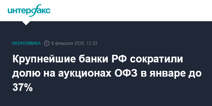 Крупнейшие банки РФ сократили долю на аукционах ОФЗ в январе до 37%
