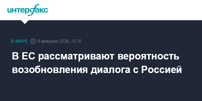 Москва. 6 февраля. INTERFAX.RU - В Евросоюзе рассматривают вероятность возобновления диалога с Россией, пишет Politico со ссылкой на европейский дипломатический источник, который участвует в дискуссиях.