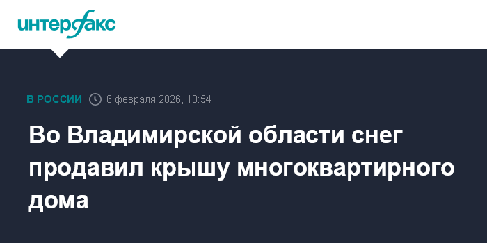 Москва. 6 февраля. INTERFAX.RU - В поселке Бавлены во Владимирской области под тяжестью снега частично разрушилась крыша двухэтажного многоквартирного дома, сообщила прокуратура региона.