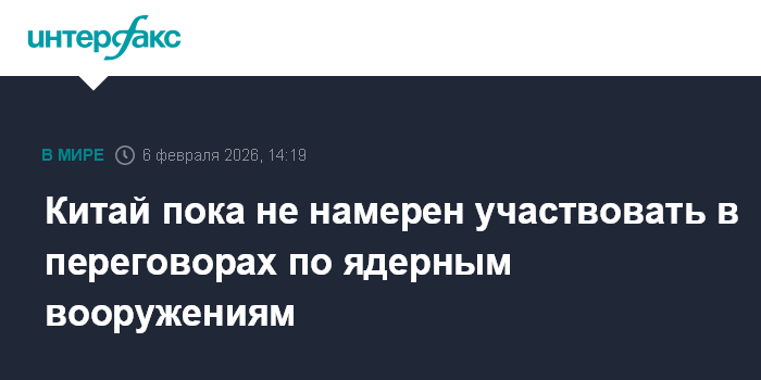 Москва. 6 февраля. INTERFAX.RU - Пекин подтвердил, что в настоящий момент не намерен принимать участия в каких-либо переговорах по ядерным вооружениям, передает EFE.