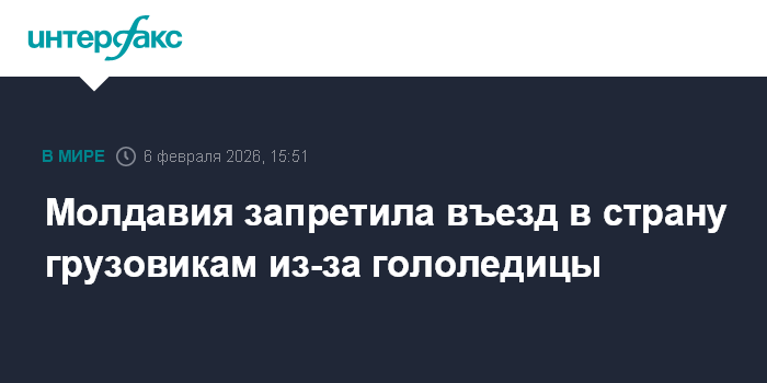 Москва. 6 февраля. INTERFAX.RU - Правительство Молдавии временно запретило въезд в страну большегрузных автомобилей и запретило проезд грузовиков по всей национальной сети дорог из-за гололедицы, сообщило "Молдпресс".