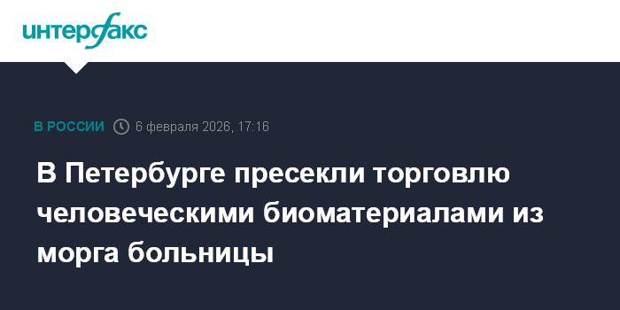 Москва. 6 февраля. INTERFAX.RU - Правоохранительные органы раскрыли схему нелегальной торговли биоматериалами из больничного морга Санкт-Петербурга для проведения опытов коммерческими компаниями, сообщила официальный представитель МВД России Ирина Волк.