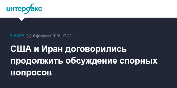Москва. 6 февраля. INTERFAX.RU - США и Иран на переговорах в столице Омана договорились о продолжении переговорного процесса, сообщил возглавляющий иранскую делегацию глава иранского МИД Аббас Аракчи. Об этом пишет Tehran Times.