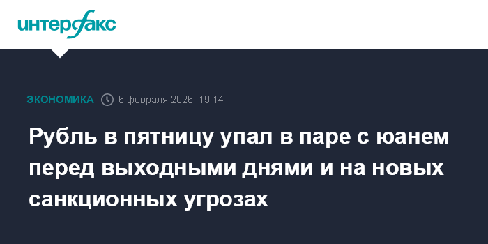 Минфин РФ с 6 февраля по 5 марта планирует продавать иностранную валюту/золото в рамках бюджетного правила на общую сумму 226,8 млрд рублей, ежедневный объем операций составит эквивалент 11,9 млрд рублей. С учетом объявленных объемов операций Минфина Банк России с 6 февраля по 5 марта будет продавать валюту объемом 16,52 млрд рублей в день (с 16 января по 5 февраля 2026 года ЦБ продавал ее объемом 17,42 млрд рублей в день).
