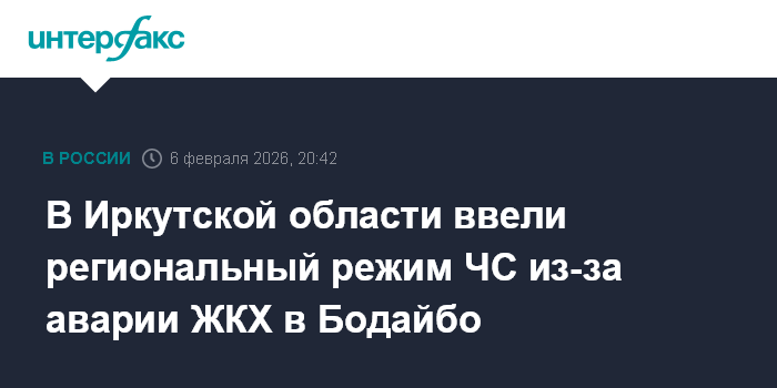 Москва. 6 февраля. INTERFAX.RU - Губернатор Иркутской области Игорь Кобзев ввел в пятницу режим чрезвычайной ситуации регионального уровня из-за коммунальной аварии, оставившей без водо- и теплоснабжения часть домов в городе Бодайбо.