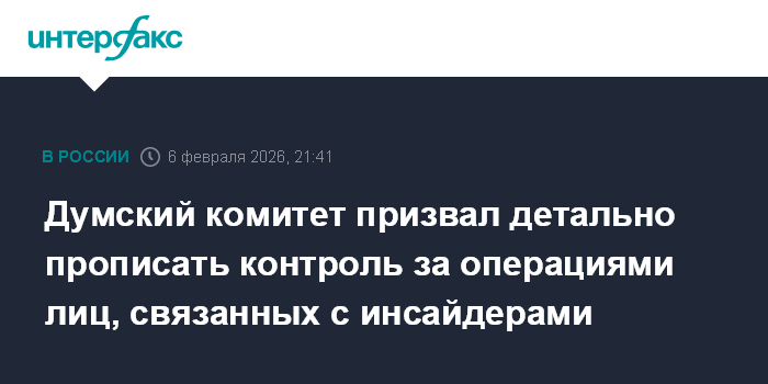 Москва. 6 февраля. INTERFAX.RU - Комитет Госдумы по финансовому рынку поддержал к принятию в первом чтении законопроект о реформе системы контроля за использованием инсайдерской информации, но указал на необходимость доработать механизм отслеживания операций родственников инсайдеров и других связанных с ними лиц.